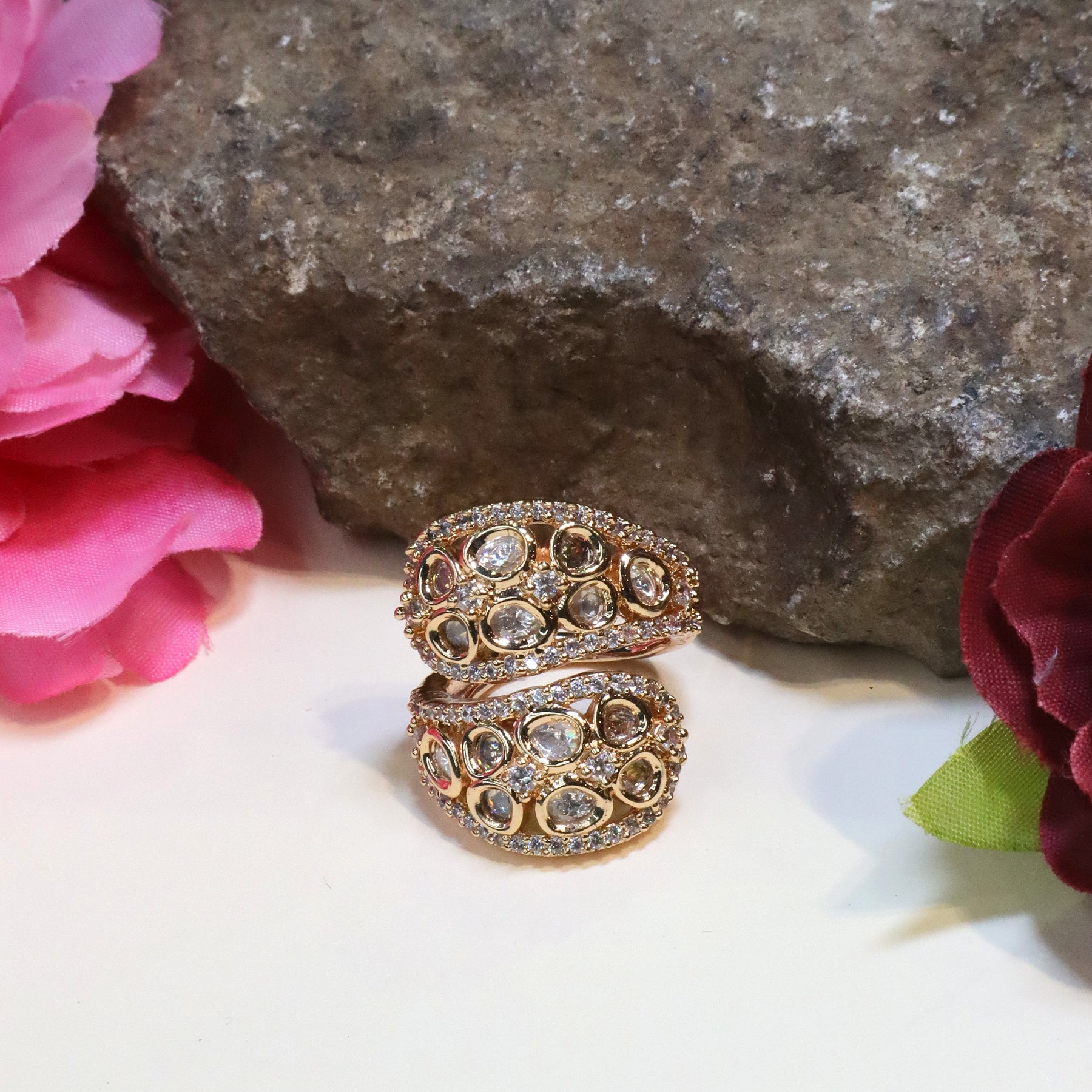 Gold-Toned Polki and Kundan Overlap Ring - SIA442499