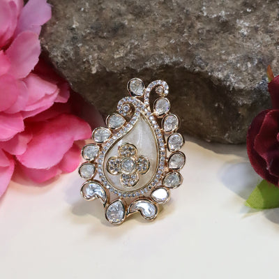 Gold-Plated Kundan Polki Ring - SIA436356