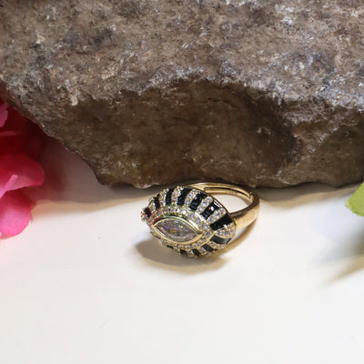 Black Dome Ring with Colorful Gemstones...