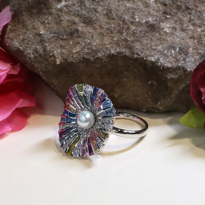 Multicolor Floral Pearl Ring - SIA440744