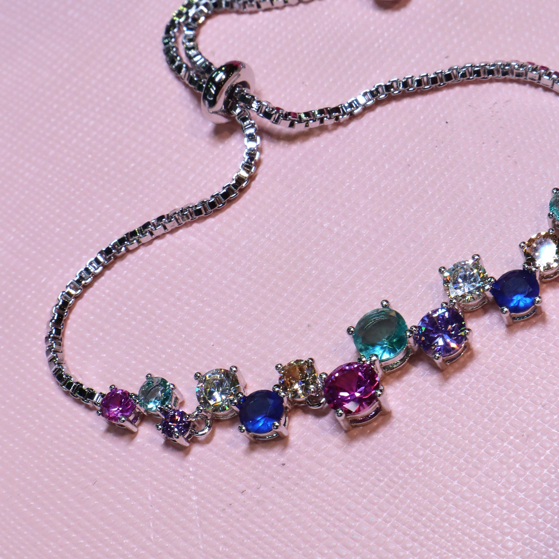Rhodium Plated Multicolored Round Stone Bracelet - SIA453377