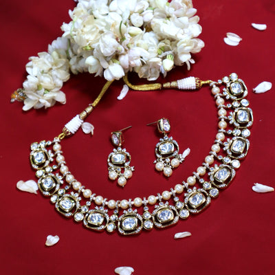 Emerald-Cut Kundan & Pearl Necklace Set...