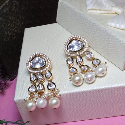 Gold-Tone Kundan, Pave & Pearl Chandeli...