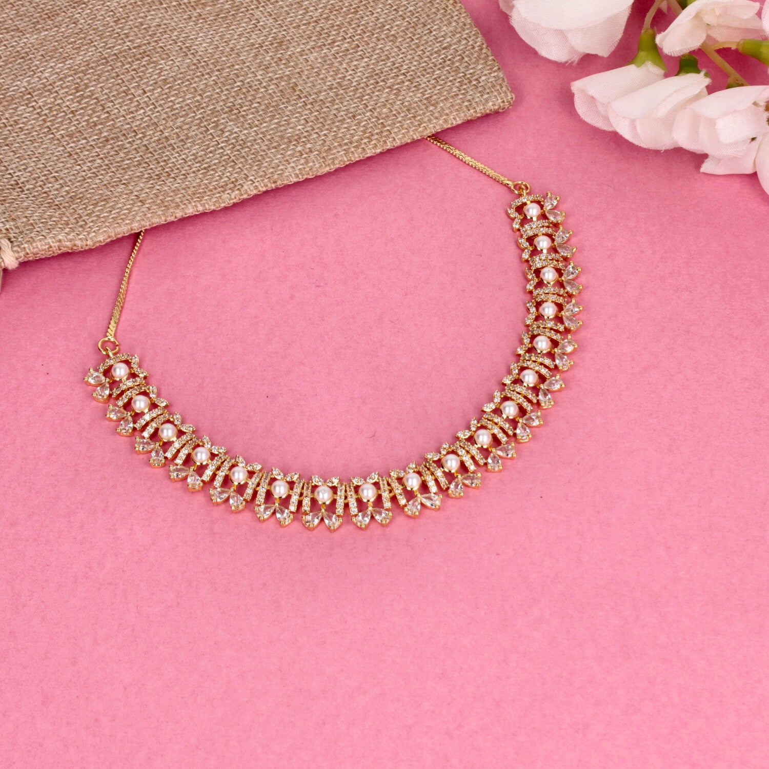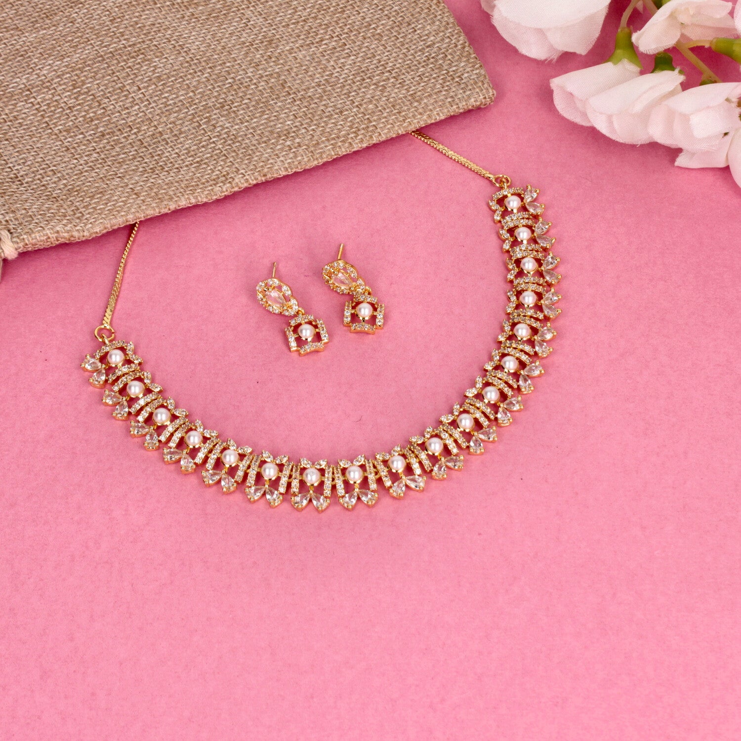 Elevate your everyday and occasion looks with this timeless jewellery set, featuring a finely crafted necklace paired with matching earrings. Designed with sparkling CZ stones and elegant detailing, each piece offers a perfect balance of sophistication and charm. Lightweight, comfortable, and beautifully finished, this set is ideal for festive wear, celebrations, and elegant daily styling. A versatile addition to your jewellery collection and a thoughtful gift choice for special moments.