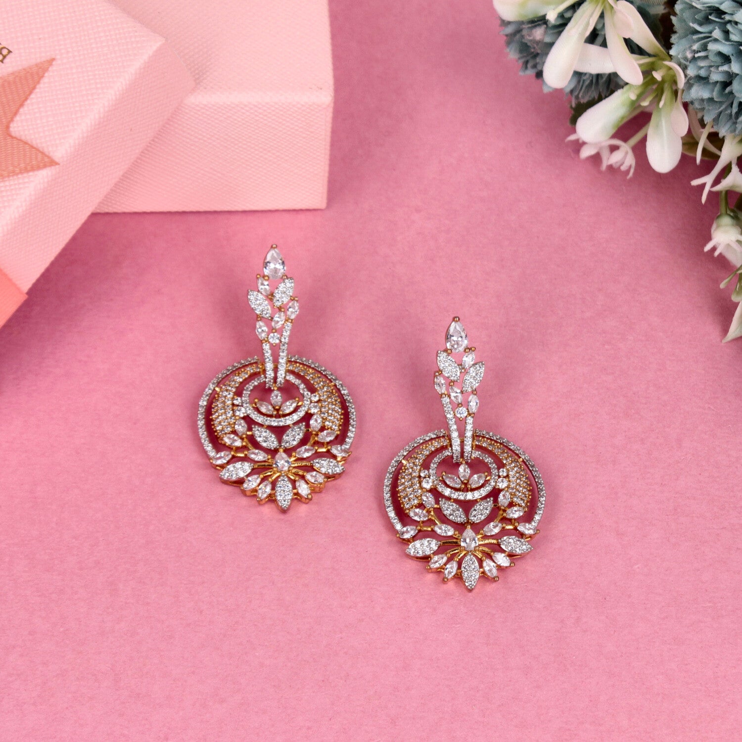 Regal Bloom CZ Statement Drop Earrings - SIA434860