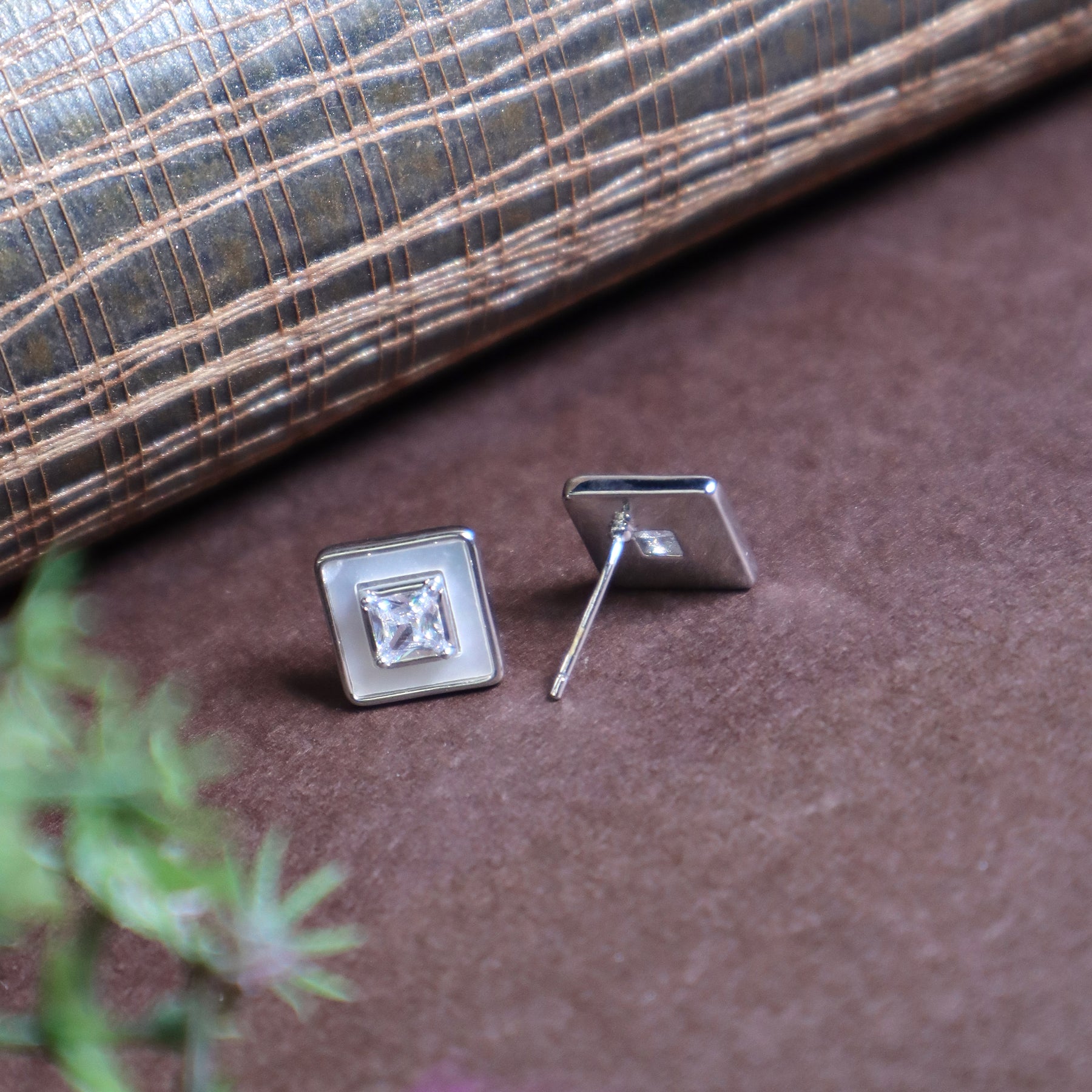 Silver Square Stud Earrings - SIA434334