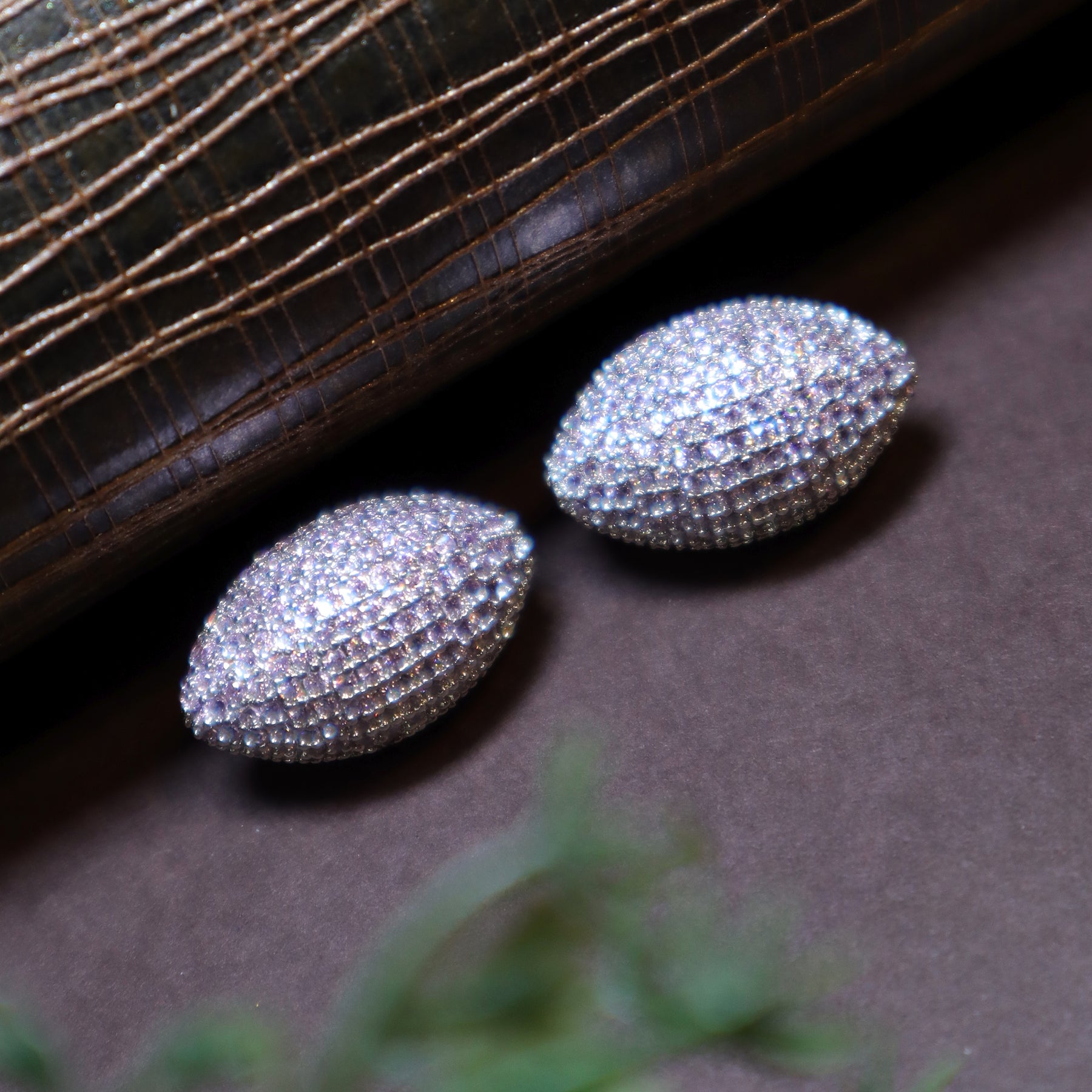 Sparkling White Gold Pave Oval Stud Earrings - SIA451427