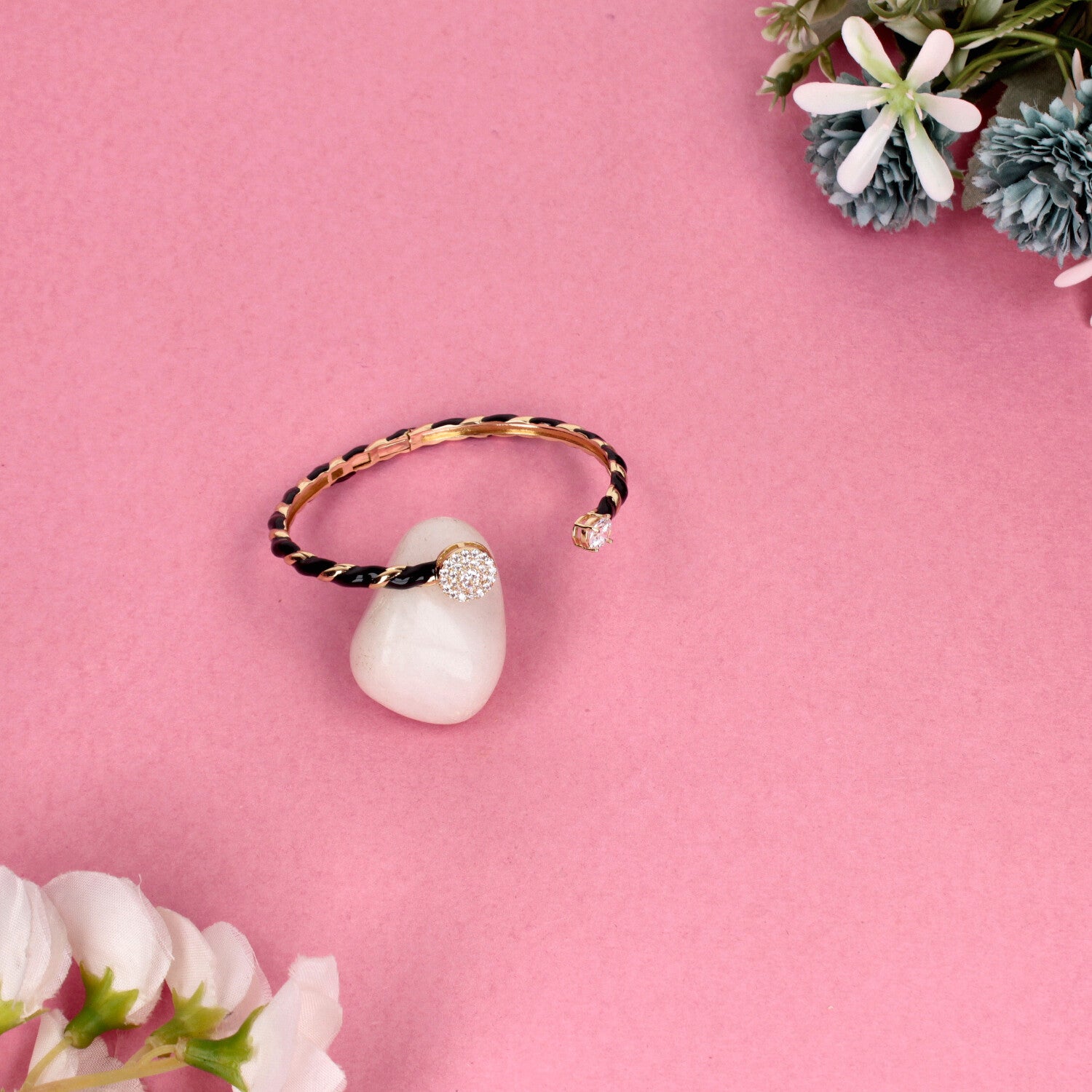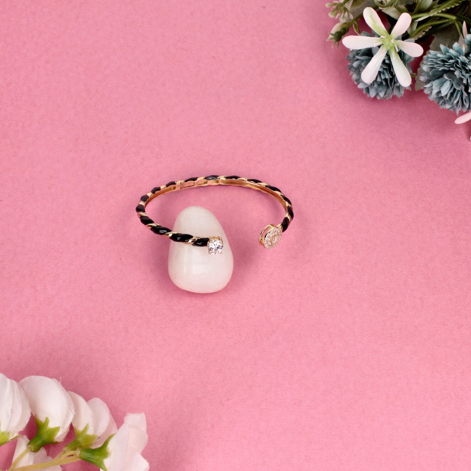 Twisted Enamel & Crystal Open Cuff Bracelet in Gold Tone - SIA458719