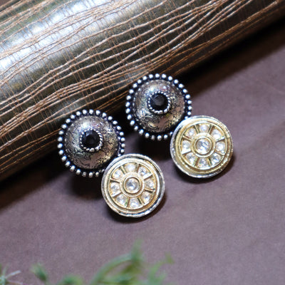 Dual-Tone Dome & Floral Kundan Studs - ...