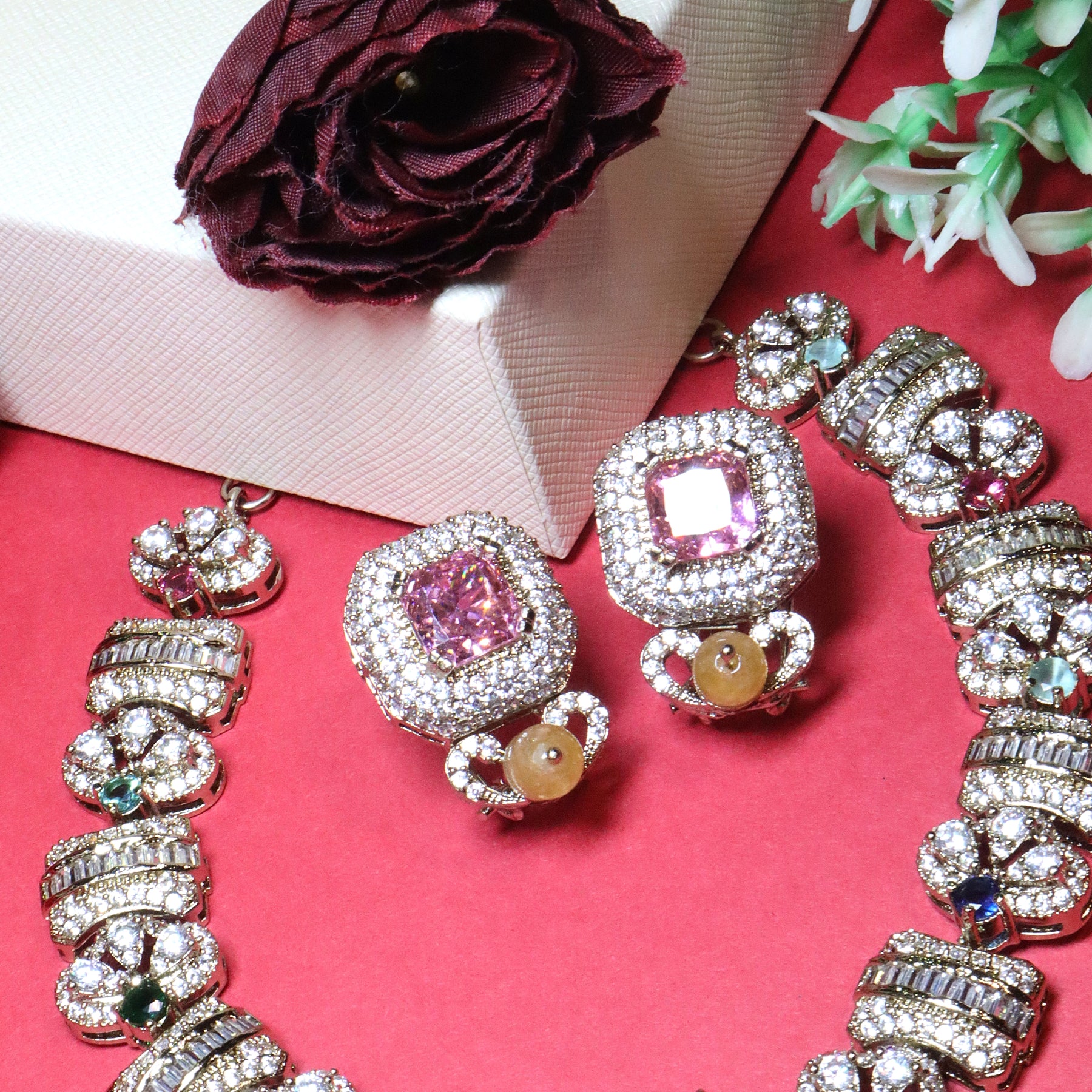 Royal Pink & Blue CZ Statement Set - SIA455646