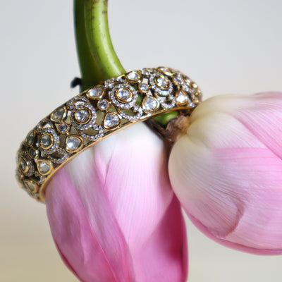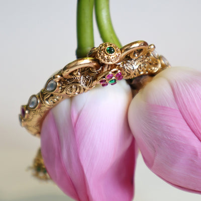 Gold Ruby & Diamond Floral Bangles -SIA...