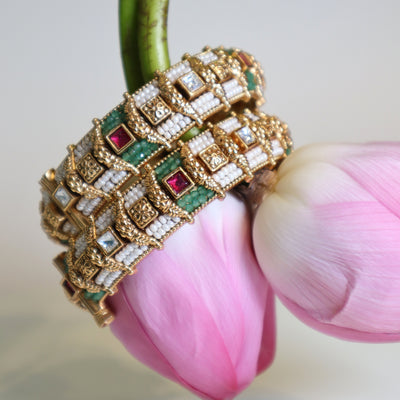 Royal Ruby-Gold Beaded Bangle Set -SIA4...