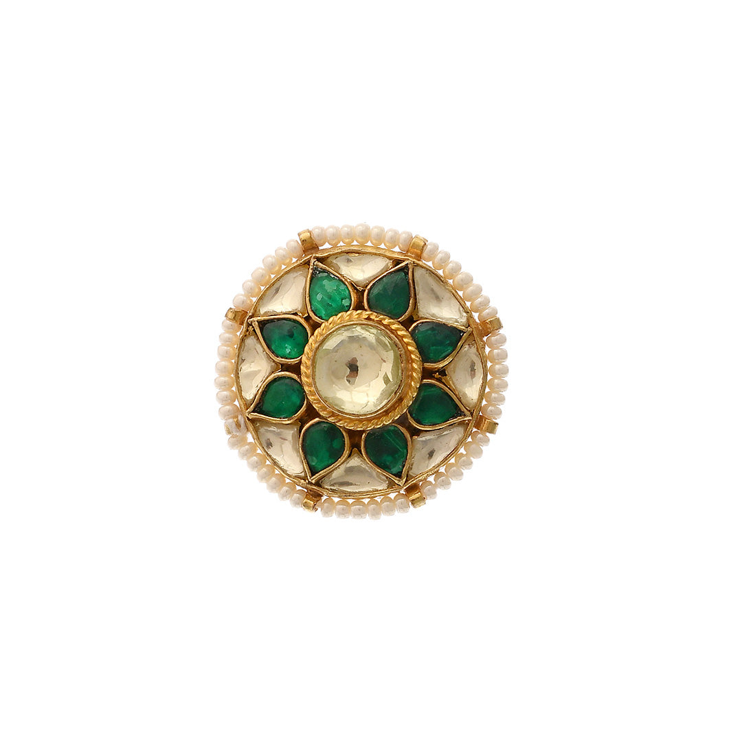 Kundan Green Jadau Ring .Length- 1in, Width- 1in