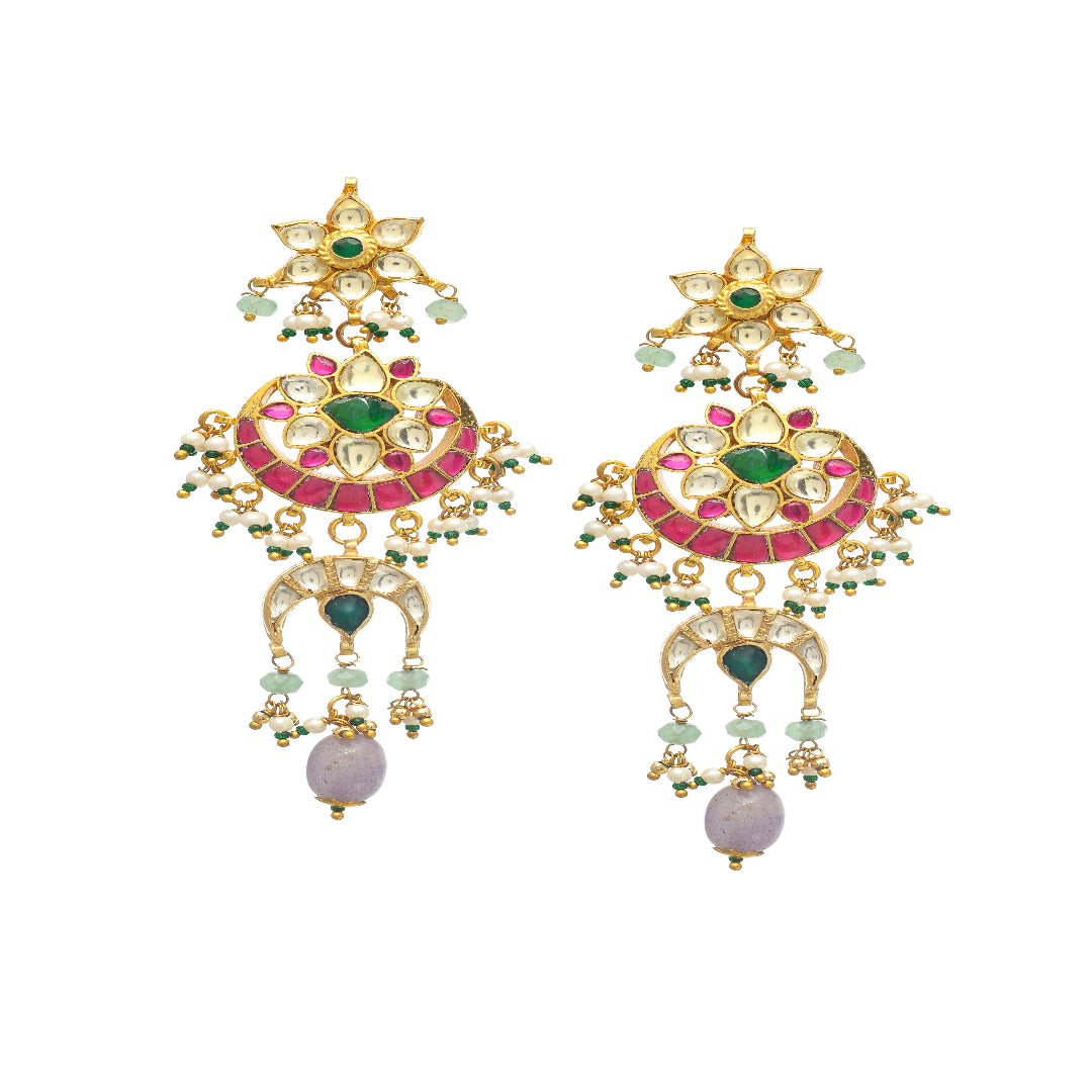 Multi Gold Finish Jadau Earrings -Length- 4.50, Width- 1in