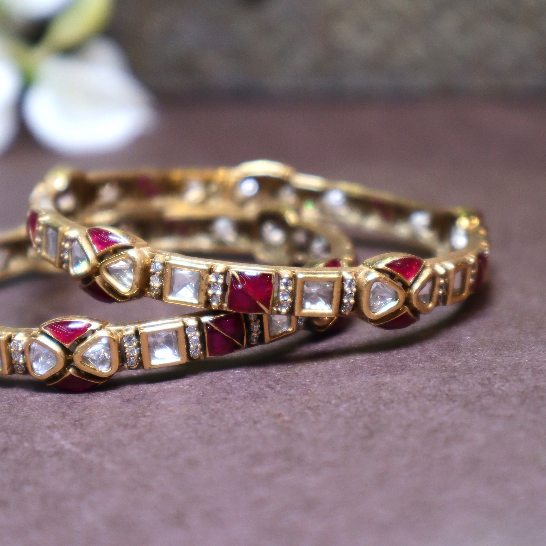 Polki Kundan Bangles with Red and White Stones - SIA447045