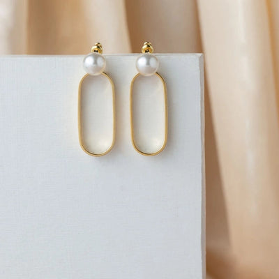 Oval Gold Ring Earrings with Hanging Wh...
