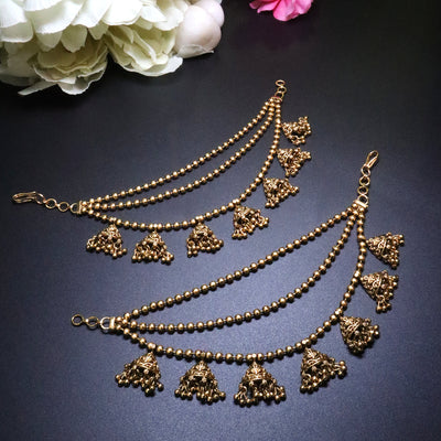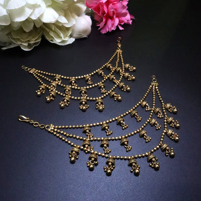 Antique Gold 3-Layered Bell Drop Ear Ch...