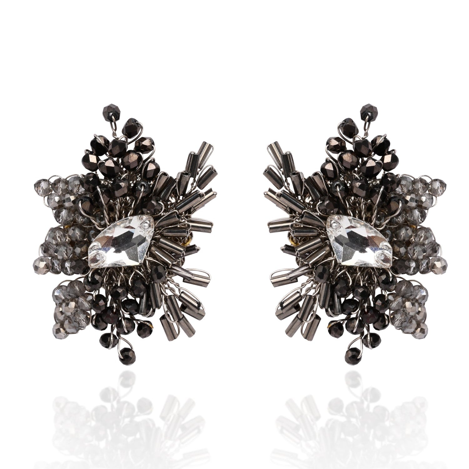 Modern Black And Silver Plated Stone Stud Earrings - BE-526-01 BLACK