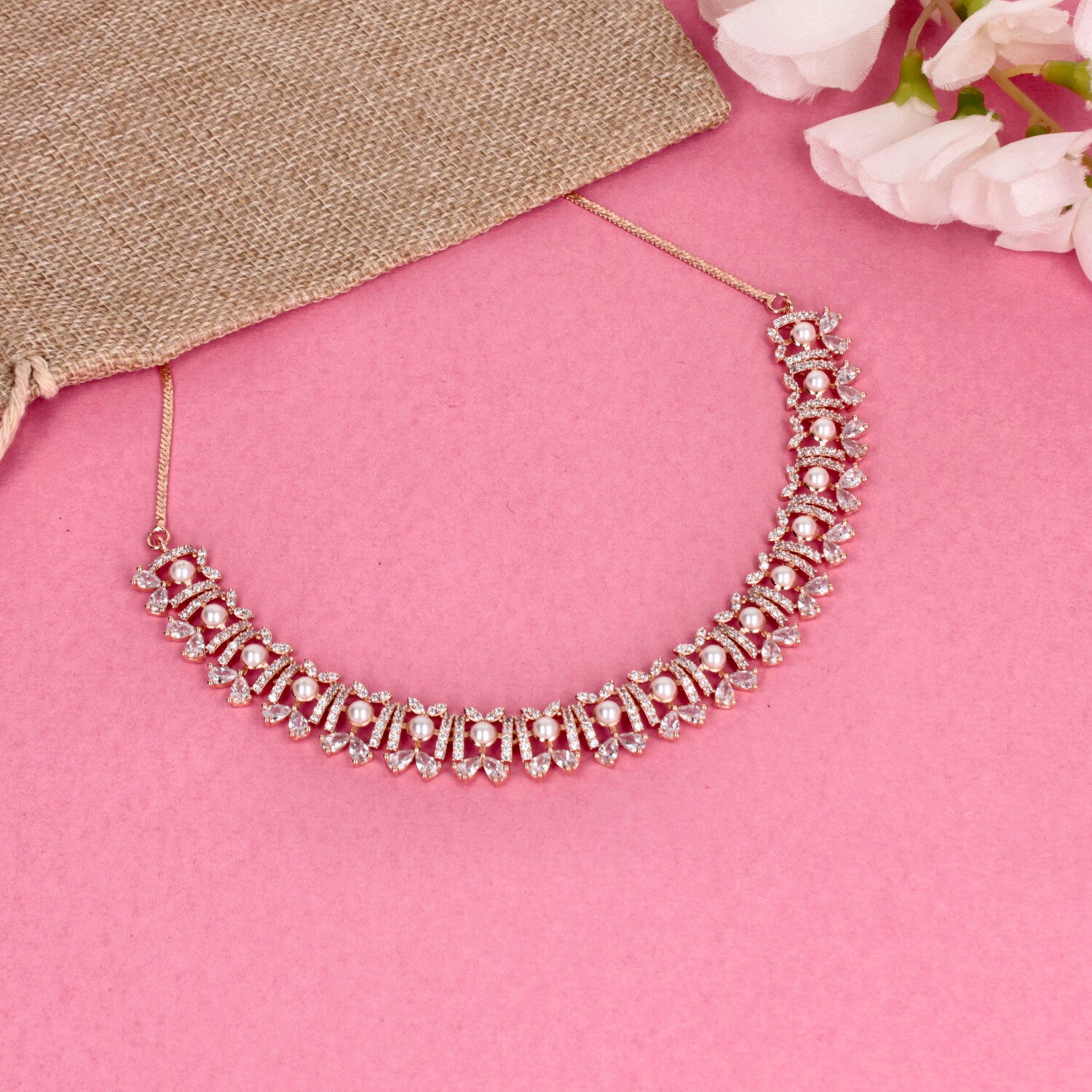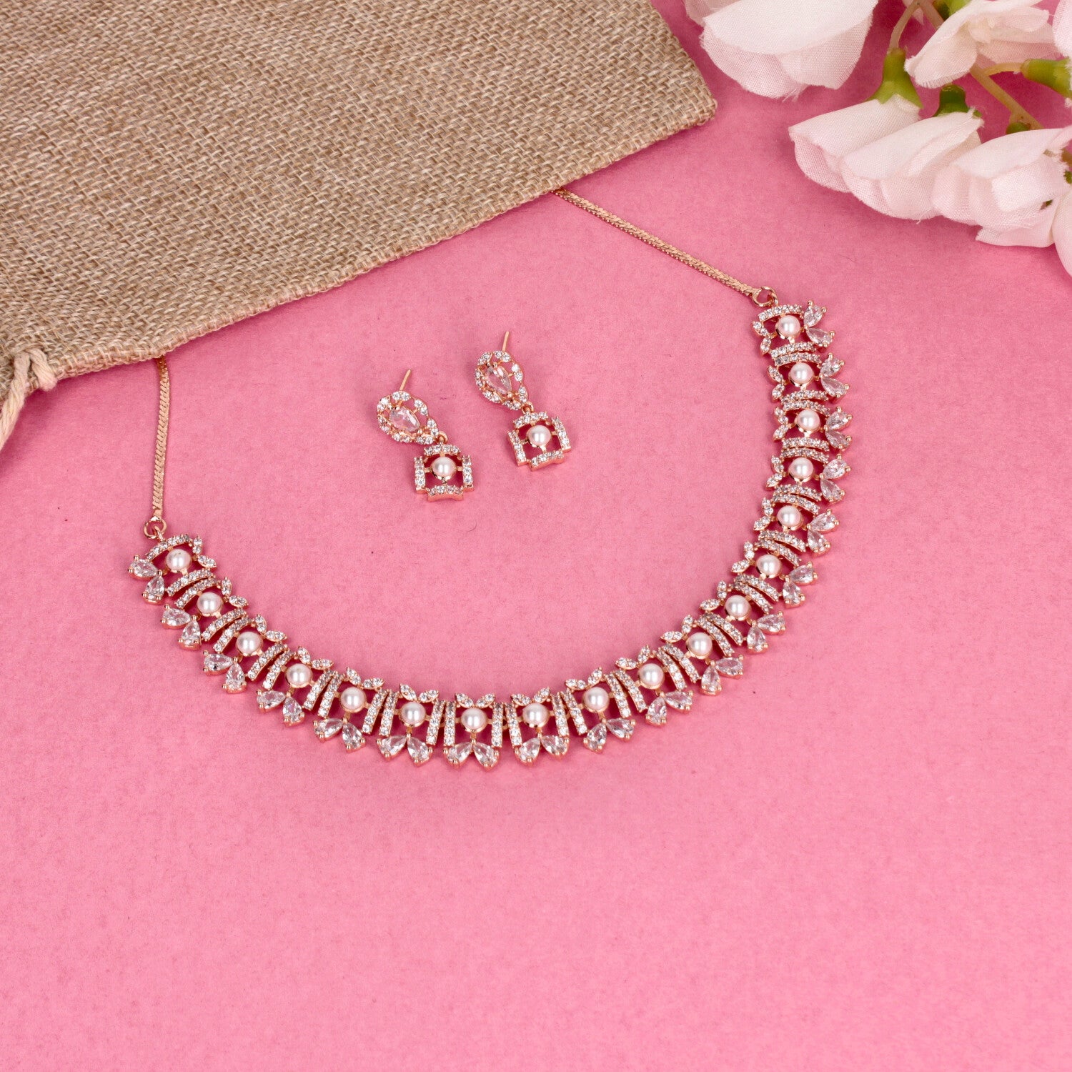 Elevate your everyday and occasion looks with this timeless jewellery set, featuring a finely crafted necklace paired with matching earrings. Designed with sparkling CZ stones and elegant detailing, each piece offers a perfect balance of sophistication and charm. Lightweight, comfortable, and beautifully finished, this set is ideal for festive wear, celebrations, and elegant daily styling. A versatile addition to your jewellery collection and a thoughtful gift choice for special moments.