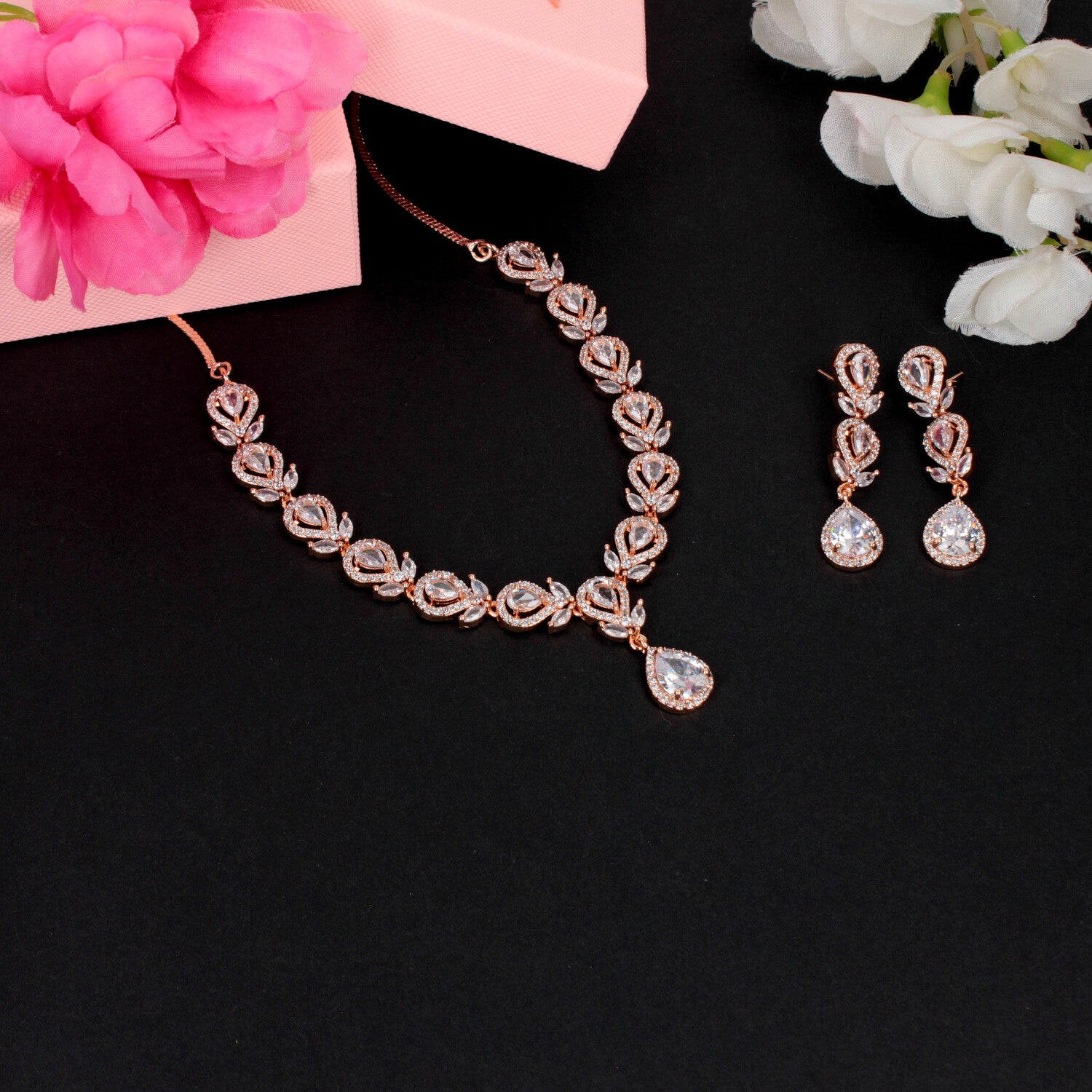 This exquisite collection features a diverse array of high-quality finishes, including Rose Gold, Gold, Rhodium, and sophisticated Two-Tone plating. The designs range from intricate Floral and delicate S-Scroll links to modern, crystal-encrusted Teardrop patterns. Each set is vibrantly accented with brilliant CZ and focal stones in stunning hues such as Rose Pink, Green, Ruby Red, Emerald, and Sapphire Blue. Complete with matching drop earrings, these sets offer a perfect blend of timeless elegance and contemporary craftsmanship for any festive occasion.