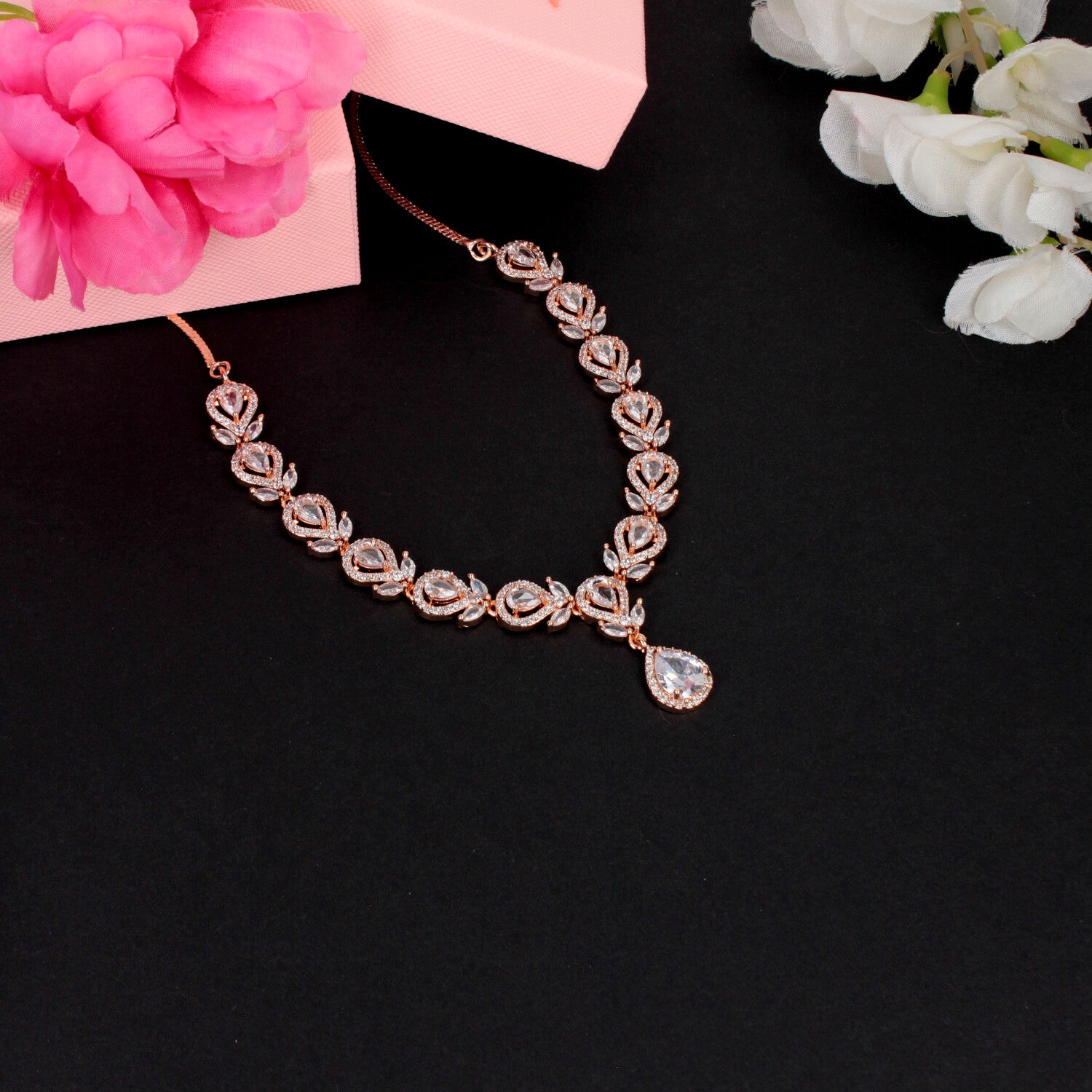 Rose Gold-Plated CZ Necklace Set - SIA459474