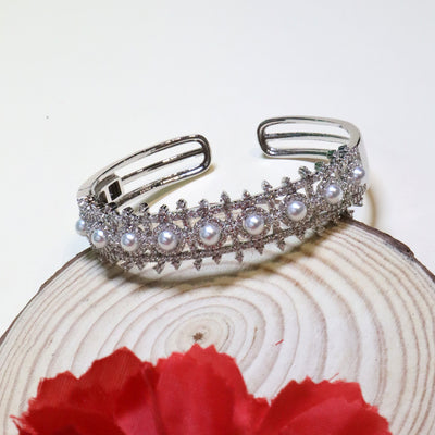 Silver Pearl Open Cuff Silver-Tone Bracelet - SIA455114