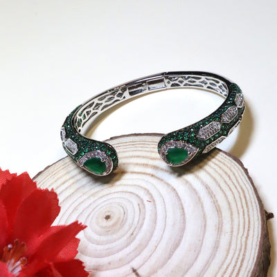 Silver-Tone Green Open Cuff Bracelet - SIA455139