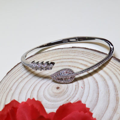 Silver-Tone Leaf Bypass Crystal Bracelet - SIA455132